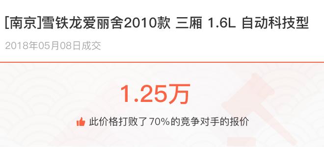 下面一起来看下开了不同公里数的雪铁龙爱丽舍在二手车拍卖平台上卖了多少钱: