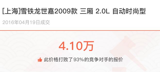 下面一起来看下开了不同公里数的雪铁龙世嘉在二手车拍卖平台上卖了多少钱:
